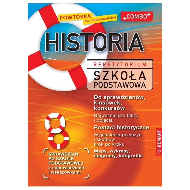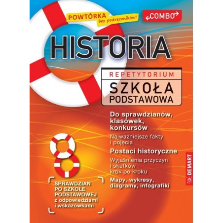 Historia w szkole podstawowej jest obecna od klasy czwartej do ósmej. A ponieważ repetytorium obejmuje wszystkie ważne tematy uwzględnione w podstawie programowej, to może zastąpić aż pięć podręczników. Każdy temat jest tak rozplanowany, żeby był od razu do ogarnięcia wzrokiem (na dwóch sąsiednich i jednocześnie widocznych stronach). Ma być rodzajem „ściągawki” wyjaśniającej i podsumowującej najważniejsze informacje dotyczące konkretnego wydarzenia czy też procesu historycznego. Wiele zagadnień ilustrują i wyjaśniają mapy oraz bogata ikonografia. Często do map i innych elementów ilustracyjnych odnoszą się zadania, które mają nakierować ucznia na utrwalenie najważniejszych faktów. Odpowiedzi zapisano „do góry nogami”, by najpierw skłonić ucznia do samodzielnych przemyśleń i dać mu możliwość sprawdzenia poprawności własnego rozumowania. Najważniejsze informacje są zapisane pismem pogrubionym i/lub kolorowym. Podsumowania są utrzymane w kolejności chronologicznej i zawierają wyjaśnienia przyczynowo skutkowe omawianych wydarzeń i procesów. Na końcu repetytorium jest sprawdzian (wraz z omówieniem i rozwiązaniami)wykonany na podstawie wzorcowych testów Centralnej Komisji Egzaminacyjnej. Podpowie kandydatowi do szkoły średniej czy dobrze opanował materiał z przedmiotu na poziomie szkoły podstawowej. To znakomita pomoc, którą uczniowie mogą wykorzystywać samodzielnie, a także z udziałem dorosłych.