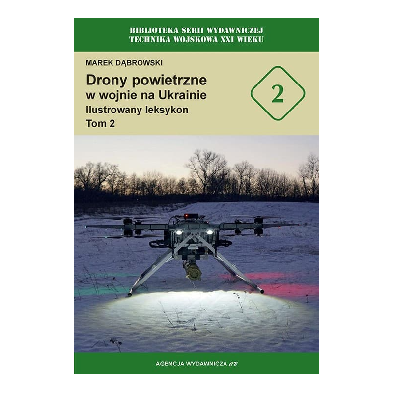 Drugi tom ilustrowanego leksykonu dronów powietrznych w wojnie na Ukrainie - od wczesnych chińskich wielowirnikowców i aparatów rozpoznawczych poprzez drony o zastosowaniu strategicznym, aparaty kamikaze aż po awangardowe drony przechwytujące. Opisano zarówno drony wprowadzone do służby liniowej, jak i będące w stadiach certyfikacji lub prototypu. W tym tomie omówiono ponad 130 kolejnych typów i odmian dronów powietrznych, opracowanych w łącznie 11 krajach. Pokazano je na zdjęciach i tablicach rozpoznawczych. Omówiono też specyfikę oraz rozwój produkcji i użycia dronów powietrznych w wojnie na Ukrainie, a także ewolucje doktryny ich wykorzystania i wyposażenia oraz taktyki działania, wynikające z szybkich zmian na polu walki.