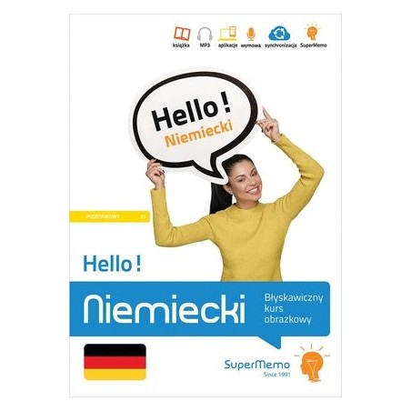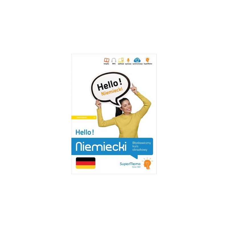 Opanuj błyskawicznie ponad 500 niemieckich słów i zdań, zebranych w 5 działach tematycznych, aby porozumiewać się swobodnie w 51 podstawowych sytuacjach komunikacyjnych na poziomie A1. Hello! Niemiecki to zawierająca 120 stron książka z obrazkowym kursem języka niemieckiego do samodzielnej nauki słownictwa i wyrażeń przydatnych podczas podróży lub kontaktu z obcokrajowcami. Publikacja obejmuje również nagrania MP3 oraz ćwiczenia, które w serwisie i aplikacji wspiera oryginalna metoda inteligentnych powtórek SuperMemo. Działy tematyczne: 1. Podróż samolotem 2. W mieście – hotel, środki transportu, restauracja 3. Rozrywki i formy spędzania czasu wolnego 4. Problemy – w aptece, na policji, w podróży 5. Na plaży i na wycieczkach W książce znajdziesz: + listy słów i zdań ze zdjęciami wspomagającymi zapamiętywanie + ćwiczenia + dialogi + klucz odpowiedzi Kupując książkę, otrzymujesz kod dostępu do jej rozszerzeń multimedialnych w SuperMemo.com: nagrań MP3 oraz ćwiczeń wspieranych oryginalną metodą inteligentnych powtórek SuperMemo (w serwisie i aplikacji SuperMemo). Jednocześnie zwracamy uwagę, że zawartość podręcznika może odbiegać od materiału kursu w SuperMemo.com. W kursie mogą wystąpić dodatkowe/inne zadania lub ćwiczenia, których nie ma w książce. Niezbędne wymagania dotyczące korzystania z dodatków multimedialnych znajdują się na stronie SuperMemo.app. SuperMemo.com to między innymi: + indywidualny dostęp do platformy internetowej i aplikacji (Windows, Android, iOS), online i offline + synchronizacja postępów nauki między Twoimi urządzeniami + nagrania MP3 + rozpoznawanie mowy, które interpretuje Twoją odpowiedź i motywuje Cię do wypowiadania się na głos podczas wykonywania ćwiczeń + oparta o badania naukowe, wielokrotnie nagradzana metoda SuperMemo, pozwalająca zapamiętywać tysiące słów z blisko 100% skutecznością.