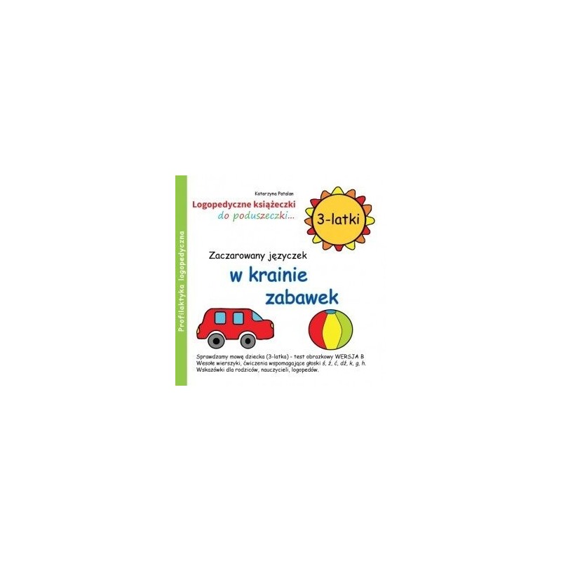 Książeczka Zaczarowany języczek w krainie zabawek powinna znaleźć się na półce każdego trzylatka. Przede wszystkim dlatego, że zawiera materiał do wspierania aparatu mowy w postaci wesołych wierszyków, rymowanek wraz z ćwiczeniami buzi i języczka. Uczy rodziców jak rozpoznać nieprawidłowości w mówieniu (prosty test obrazkowy z opisem),  jak stymulować i rozwijać  mowę za pomocą kreatywnych opowiadań (loteryjka obrazkowa) oraz podaje przykłady ćwiczeń oddechowych, ćwiczeń głosowych i słuchowych. Pod wierszykami znajdują się wskazówki, dzięki którym rodzice będą wiedzieli jak ćwiczyć wraz z dzieckiem oraz jakie głoski wspieramy na dany wiek. Książeczki z tej serii na pewno przyniosą wiele radości i wspólnej dobrej zabawy. Cała zielona seria (trzy części) stanowi komplet ćwiczeń i zadań dla trzylatków.