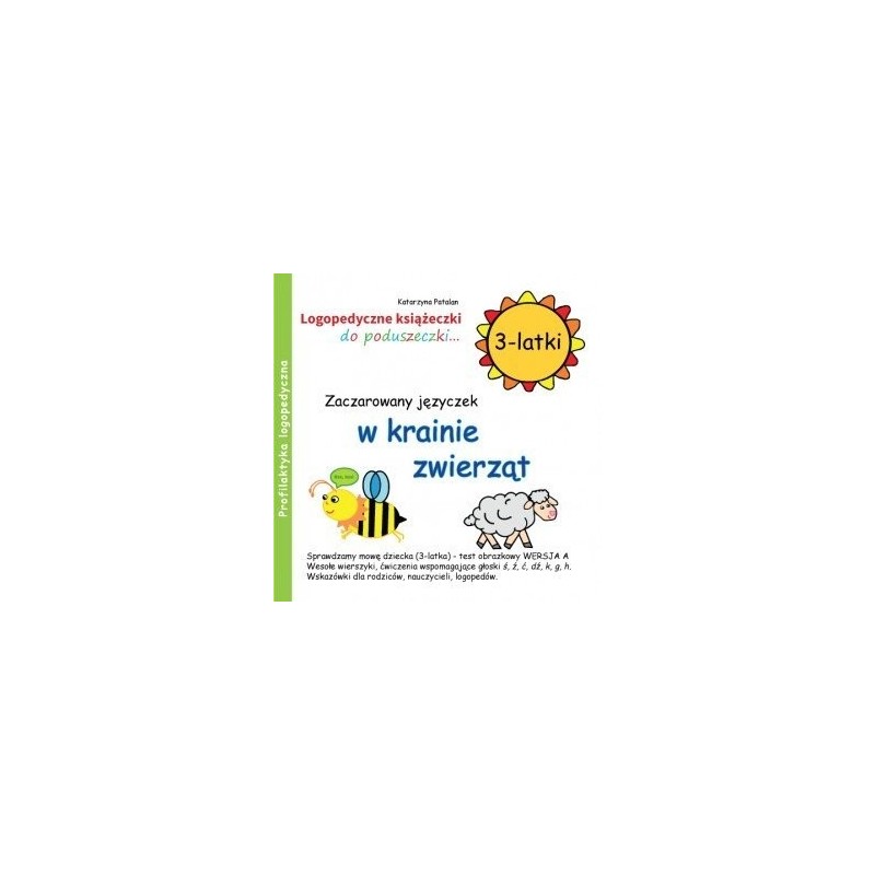 Książeczka Zaczarowany języczek w krainie zwierząt powinna znaleźć się na półce każdego trzylatka. Przede wszystkim dlatego, że zawiera materiał do wspierania aparatu mowy w postaci wesołych wierszyków, rymowanek wraz z ćwiczeniami buzi i języczka. Uczy rodziców jak rozpoznać nieprawidłowości w mówieniu (prosty test obrazkowy z opisem),  jak stymulować i rozwijać  mowę za pomocą kreatywnych opowiadań (loteryjka obrazkowa) oraz podaje przykłady ćwiczeń oddechowych, ćwiczeń głosowych i słuchowych. Pod wierszykami znajdują się wskazówki, dzięki którym rodzice będą wiedzieli jak ćwiczyć wraz z dzieckiem oraz jakie głoski wspieramy na dany wiek. Książeczki z tej serii na pewno przyniosą wiele radości i wspólnej dobrej zabawy. Cała zielona seria (trzy części) stanowi komplet ćwiczeń i zadań dla trzylatków.