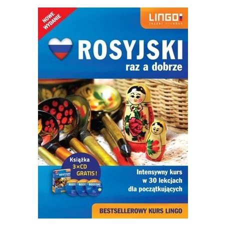 Intensywny kurs Lingo „Rosyjski raz a dobrze” to skuteczny i szybki sposób na opanowanie języka rosyjskiego zarówno dla początkujących, jak i dla tych, co już nieraz zaczynali. Aktualna tematyka: biznes, internet, poszukiwanie pracy, turystyka. Nowoczesna metodyka: język komunikacyjny, rozumienie ze słuchu. To także pierwszy pełny PAKIET MOBILNY I MULTIMEDIALNY (3xCD, eBook, Audiobook) zawierający wszystko, czego potrzeba do samodzielnej nauki języka.