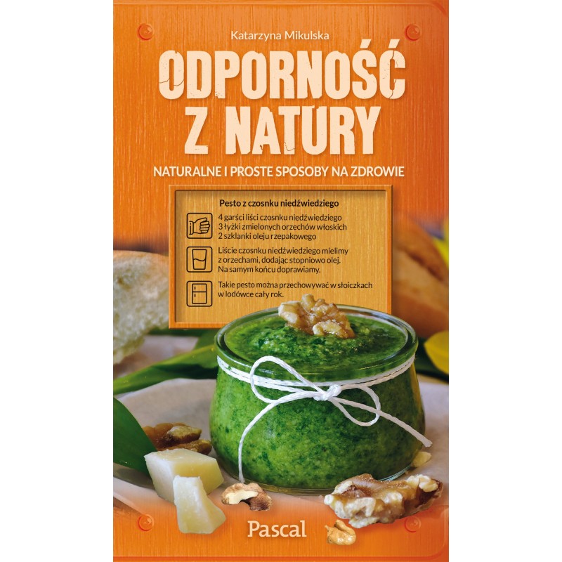 Pesto z czosnku niedźwiedziego 4 garści liści czosnku niedźwiedziego 3 łyżki zmielonych orzechów włoskich 2 szklanki oleju rzepakowego Liście czosnku niedźwiedziego mielimy z orzechami, dodając stopniowo olej. Na samym końcu doprawiamy. Takie pesto można przechowywać w słoiczkach w lodówce cały rok. Zdrowie to podstawa. Jego zachowanie w dużej mierze zależy od naszej odporności i genów. Aktywację wielu chorób dziedzicznych możemy jednak powstrzymać, a odporność wzmocnić właściwą dietą i aktywnością fizyczną. W niniejszej książce prezentujemy doskonałe, proste i efektywne przepisy, które wzmocnią naturalne mechanizmy obronne organizmu. KSIĄŻKA ZAWIERA: listę ziół leczniczych i roślin dezynfekujących sprawdzone przepisy kulinarne wzmacniające odporność wskazówki zastosowania roślin i miodów do celów leczniczych informacje, jak przygotować się na zimę CZY WIESZ, ŻE… kompot z malin działa przeciwgorączkowo? ziele czosnku niedźwiedziego obniża ciśnienie krwi? czosnaczek pospolity ma właściwości dezynfekujące? spożywanie mniszka lekarskiego na surowo pobudza przemianę materii? miód pszczeli stosuje się w leczeniu astmy oskrzelowej i kataru siennego? ZOBACZ MATERIAŁY AUDIOWIZUALNE DZIĘKI APLIKACJI PASCAL AR