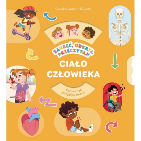 To interaktywna książka edukacyjna dla dzieci, która w przystępny i angażujący sposób przybliża tajemnice ludzkiego ciała.Dzięki bogactwu ruchomych elementów – klapkom do podnoszenia, kołom do obracania, suwakom i zakładkom – młodzi czytelnicy mogą dosłownie „,zajrzeć pod skórę“, i krok po kroku odkrywać, jak działają nasze organy, mięśnie czy układ krwionośny. Książka zaprasza do aktywnego poznawania anatomii poprzez zabawę: znajdziemy tu rozkładankę 3D, quiz utrwalający wiedzę oraz grę w poszukiwania, która zamienia naukę w emocjonującą przygodę. Barwne ilustracje, proste objaśnienia i interaktywna forma sprawiają, że trudne tematy stają się zrozumiałe i fascynujące nawet dla najmłodszych. To idealna pozycja dla małych odkrywców, ciekawych tego, co kryje się wewnątrz każdego z nas.