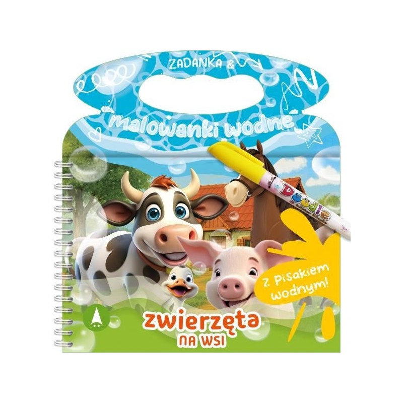 Porównuj elementy, odgaduj zależności i szukaj właściwych dróg. Koloruj sympatycznych bohaterów kilkoma kroplami wody. Rozwiąż wesołe zadania wymagające nieco chlapania!Zawarte w książeczce ćwiczenia i związane z nimi wodne malowanki pomogą maluchowi doskonalić spostrzegawczość i umiejętność kojarzenia. Pozwolą też rozwijać sprawność manualną i przygotują rękę do pisania.Zestaw z serii „,Zadanka & Malowanki Wodne“, zawiera zeszyt z zadankami i malowankami powleczonymi specjalną powłoką, która zmienia swoje właściwości pod wpływem wilgoci, oraz pisak ze zbiorniczkiem na wodę. Malowanki wielorazowego użytku – ponownie tracą kolor po wyschnięciu. Elementy zestawu nie podlegają sprzedaży osobno.Aby wykonać wodną malowankę: 1. Rozkręć wodny pisak i napełnij zbiorniczek wodą. Skręć przyrząd. 2. Zamaluj pisakiem te obszary wodnej malowanki, którym chcesz nadać kolor. 3. Kiedy malowanka wyschnie, barwy znikną. Możesz kolorować jeszcze raz!